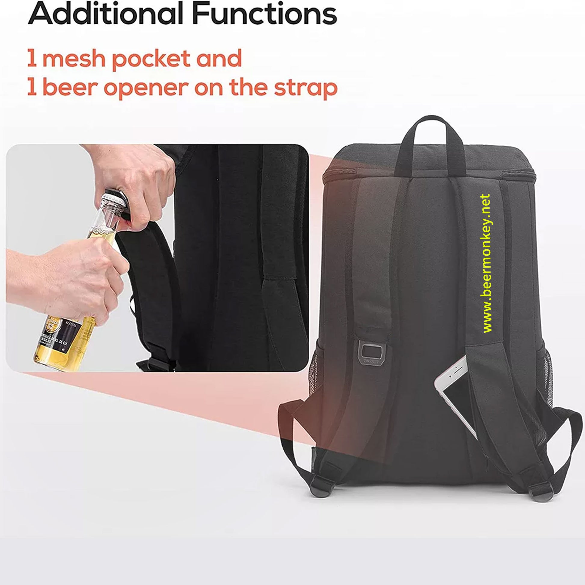 It is equipped with a shoulder strap pocket for your phone. We added a bottle opener, allowing you to enjoy a cool drink anywhere! It also includes